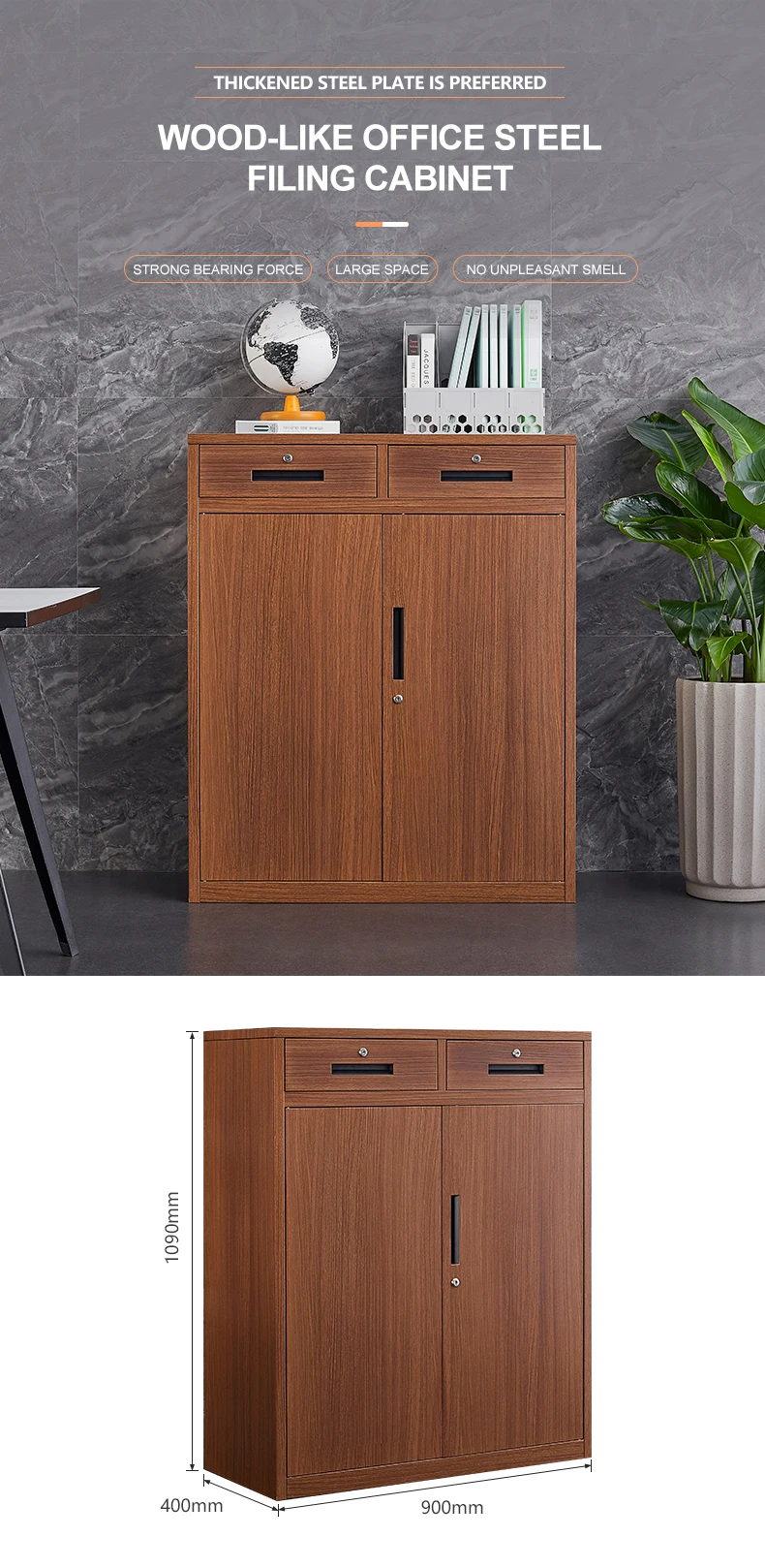 تصميم حديثة مثل خزانة ملونة للمعادن مع درجتين ورفوف خزانة تخزين المكاتب الصلب القابلة للتعديل